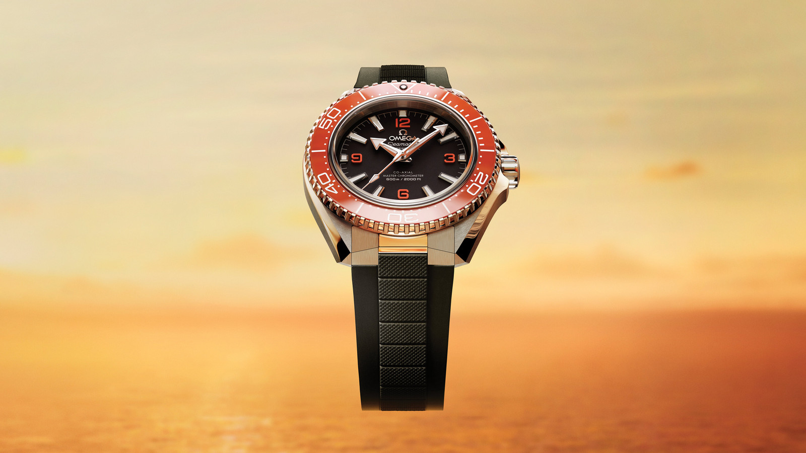 这款42毫米腕表采用经过抛光与拉丝处理的精钢表壳,搭配饰有白色复合陶瓷潜水刻度的抛光橙色陶瓷表圈,内圈则以抛光5级钛金属精制而成。